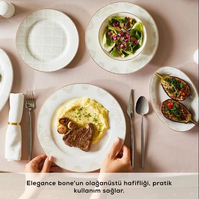 Karaca Elegance Bone Siena 53 Parça 12 Kişilik Yemek Takımı Goldقابل شستشو در ماشین ظرفشویی