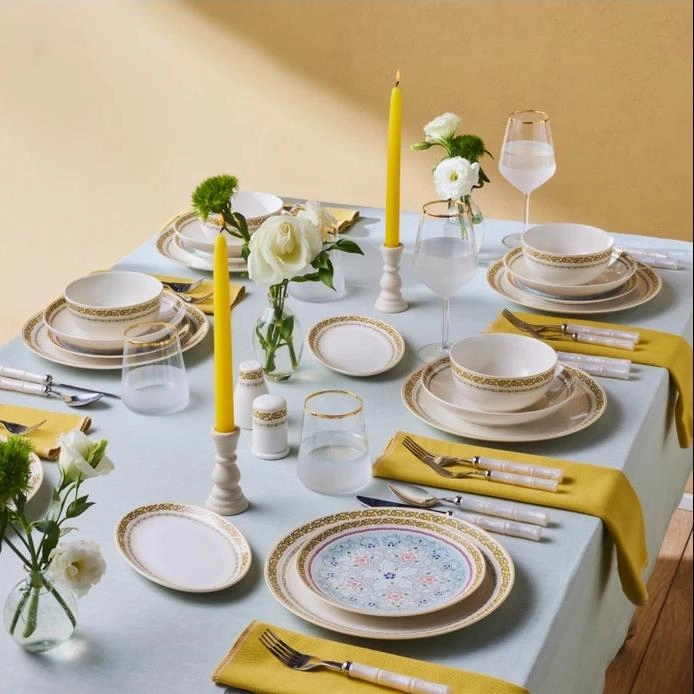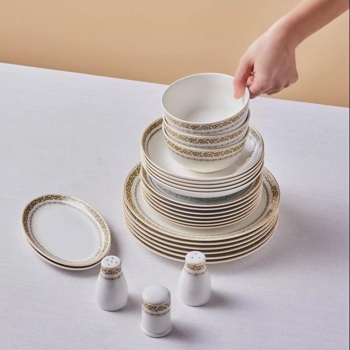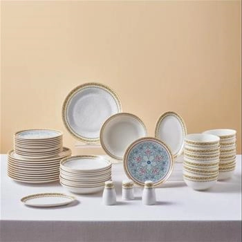 - بسته شامل 12 عدد بشقاب سرو 12 عدد بشقاب غذاخوری 12 عدد پیش دستی 12 عدد کاسه 2 عدد دیس کوچک 1 عدد نمک پاش 1 عدد فلفل پاش 1 عدد نگهدارنده خلال دندان