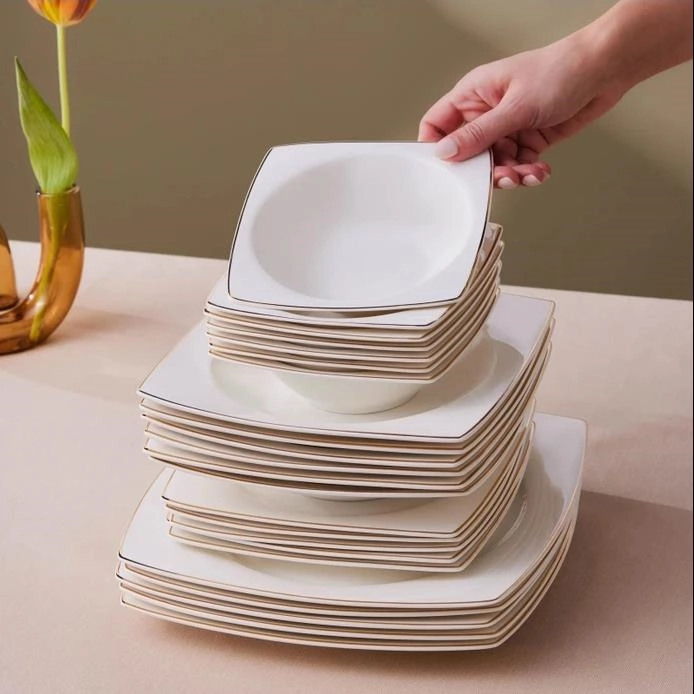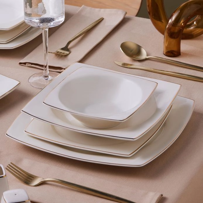 Karaca Square Bone Jamie 53 Parça 12 Kişilik Yemek Takımı Goldویژگیهای محصول