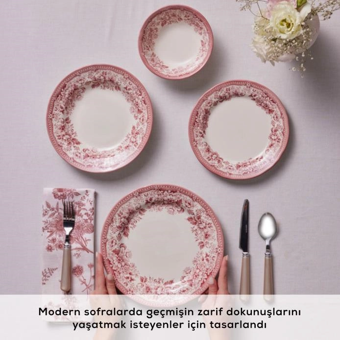 سرویس غذاخوری 24 پارچه 6 نفره کاراجا Diana Rose صورتی