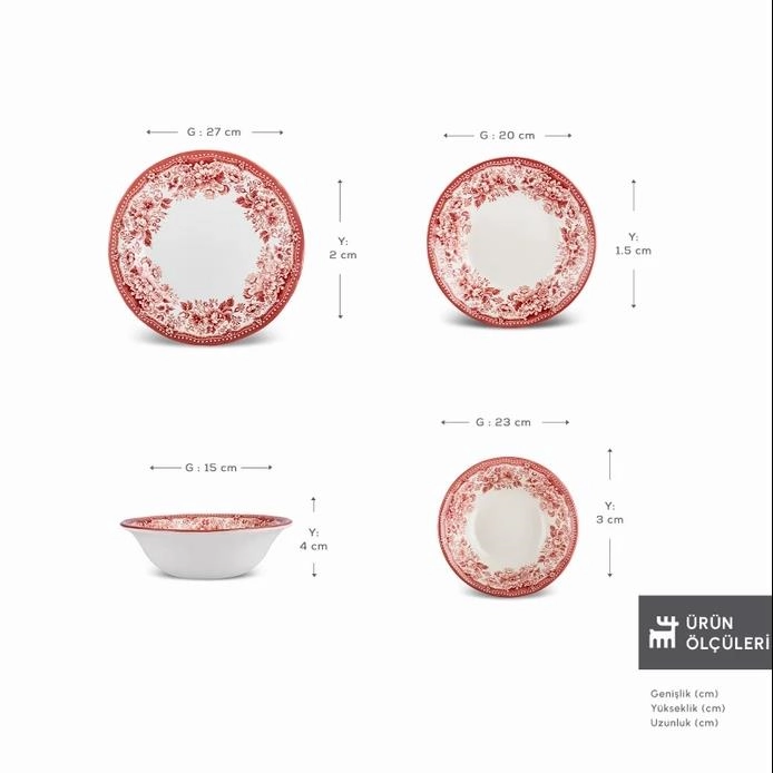 - بسته شامل 6 عدد بشقاب سرو 6 عدد خورش خوری 6 عدد پیش دستی 6 عدد کاسه