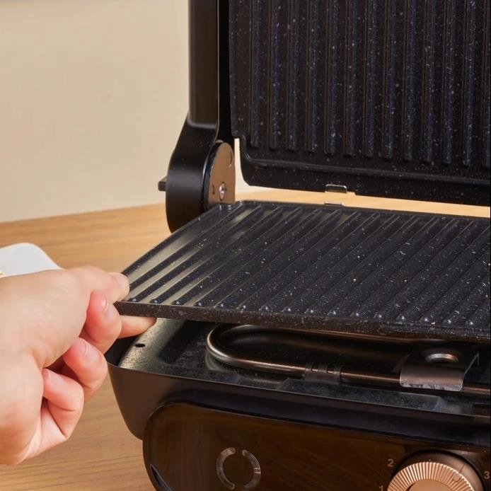 بدنه قابل تنظیم برای پخت انواع مواد خوراکی با ضخامت های مختلفصفحات ریخته گری قابل جدا شدن را می توان بدون زحمت در ماشین ظرفشویی تمیز کرد