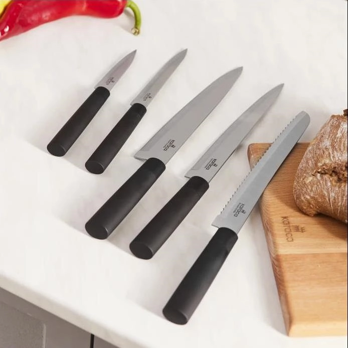 بسیار شیک و هم بسیار کاربردی،14پارچه شامل چاقوهای تیز، ابزار ارگونومیک سرویس، پایه مخصوص که باعث صرفه جویی در فضا می شود