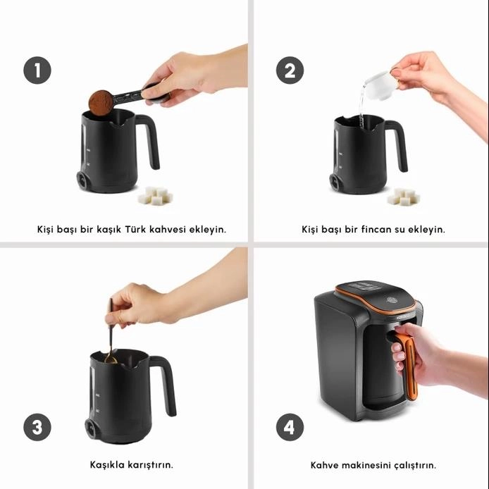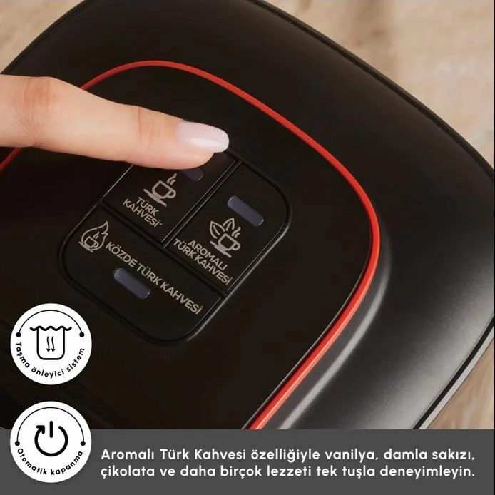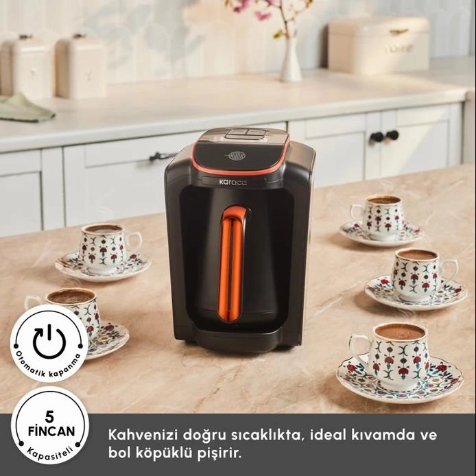 با دستگاه قهوه ترکی Karaca Hatır Neo از قهوه ترک، قهوه بو داده و قهوه ترک طعم دار لذت ببرید !شما می توانید با انتخاب یکی از 3 طعم مورد نظر خود با توجه به ذائقه خود 5 فنجان قهوه را در هر نوبت تهیه کنید .