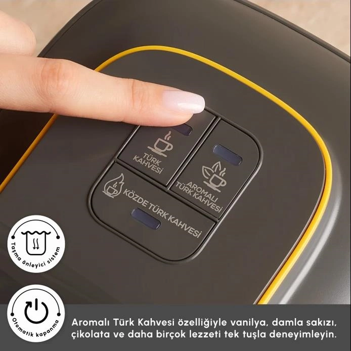 با دستگاه قهوه ترکی Karaca Hatır Neo از قهوه ترک، قهوه بو داده و قهوه ترک طعم دار لذت ببرید !شما می توانید با انتخاب یکی از 3 طعم مورد نظر خود با توجه به ذائقه خود 5 فنجان قهوه را در هر نوبت تهیه کنید .