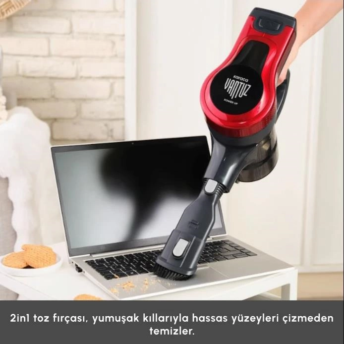نیروی مکش بی سیم با فناوری موتور Powermax توسعه یافته است. با باتری و سر توربو پاک کننده قدرت مکش بالایی دارد. تمیز کردن را آسان و بدون دردسر می کند.Vantuz Power Up با فناوری باتری لیتیوم یون 2000 میلی آمپر ساعتی خود به طور مداوم به مدت 45 دقیقه جارو می کند.