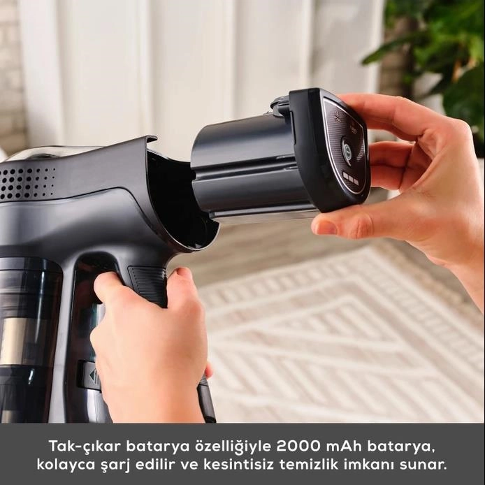 به لطف فناوری باتری قابل جابجایی، جاروبرقی Vantuz Power Up Pro شما میتواند به راحتی در هر مکان یا روی آویز آن شارژ شود. علاوه بر این، با باتری 2500 میلی آمپر ساعتی خود 50 دقیقه تمیز کردن بدون وقفه را ارائه می دهد.