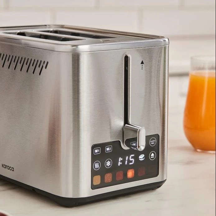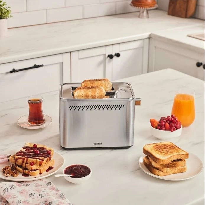 Karaca Color Touch Inox Ekmek Kızartma Makinesiبا تنظیمات 6 مرحلهای تست، میتوانید نان خود را تا هر درجهای که میخواهید تست کنید.