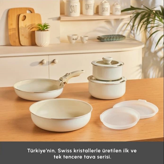 Karaca Swiss Crystal Almond Cream Easy Clip 9 Parça İndüksiyon Tabanlı Tencere Setiویژگیهای محصول