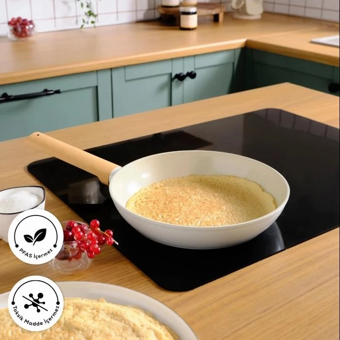 Karaca Swiss Crystal Almond Cream İndüksiyon Tabanlı Tava 22 Cmفاقد PFAS و مواد شیمیایی مضر
