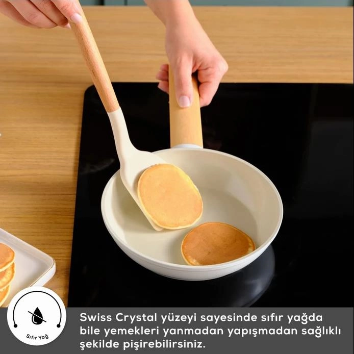Karaca Swiss Crystal Almond Cream İndüksiyon Tabanlı Tava 18 Cmفاقد PFAS و مواد شیمیایی مضر