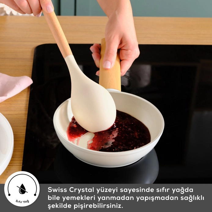 Karaca Swiss Crystal Almond Cream İndüksiyon Tabanlı Tava 16 Cmفاقد PFAS و مواد شیمیایی مضر