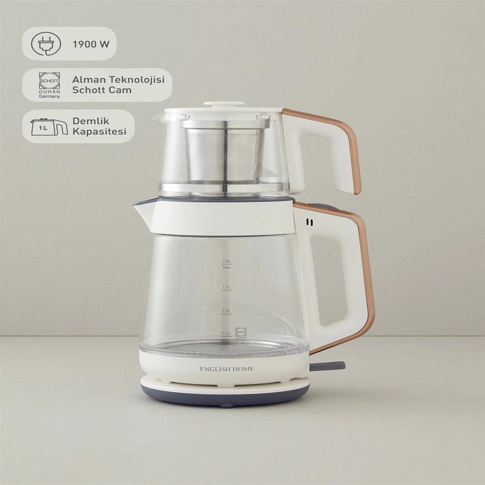English Home CMK 6001 Cam Çay Makinesi ve Kettle Beyaz-Bakırویژگیهای محصول