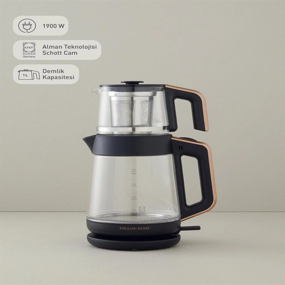 English Home CMK 6001 Cam Çay Makinesi ve Kettle Siyah-Bakırویژگیهای محصول