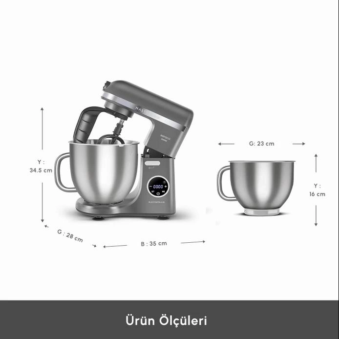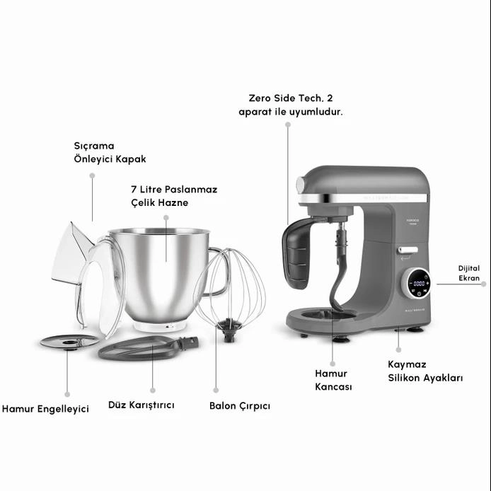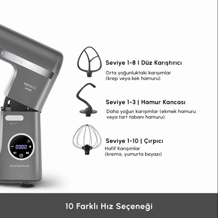 Karaca Mastermaid Chef Ultra D2000W Dijital Ekranlı Hamur Yoğurma Makinesi Galaxy Grey 7Lویژگیهای محصول