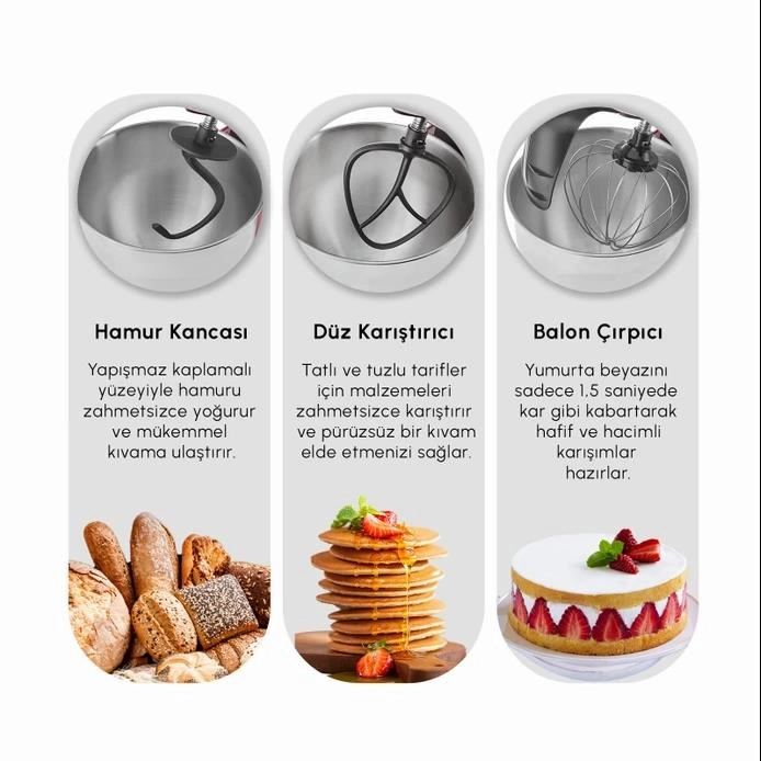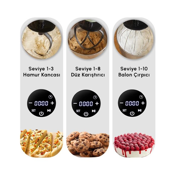 Karaca Mastermaid Chef Ultra D2000W Dijital Ekranlı Hamur Yoğurma Makinesi Tiffany 7Lویژگیهای محصول