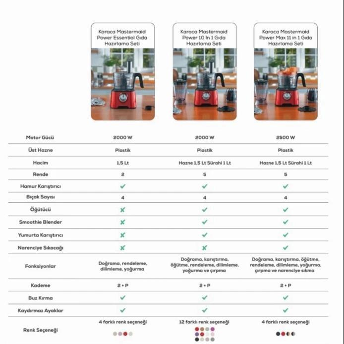 Karaca Mastermaid Power Multifunctional 10 in 1 Mutfak Robotu 2000W Wood Craftویژگیهای محصول