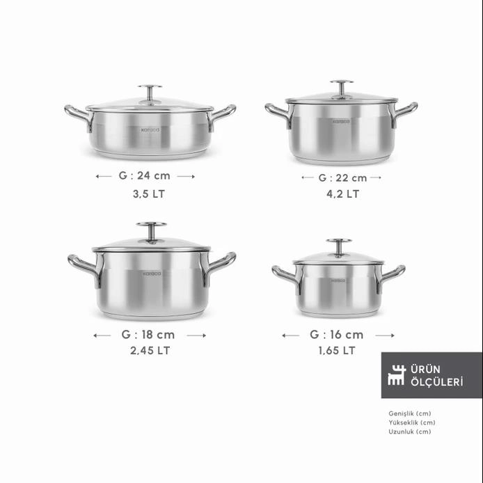 Karaca Arven İndüksiyon Tabanlı 8 Parça Çelik Tencere Setiویژگیهای محصول