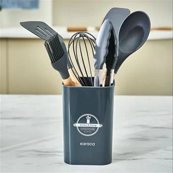 - بسته شامل قاشق آشپزخانه 31.5×6 سانتی متر کاردک حفره دار 37×7 سانتی متر کاردک 31×5 سانتی متر فرچه 27×4 سانتی متر همزن 24×7 سانتی متر انبر 27×3.7 سانتی متر استند 10×10×15 سانتی متر