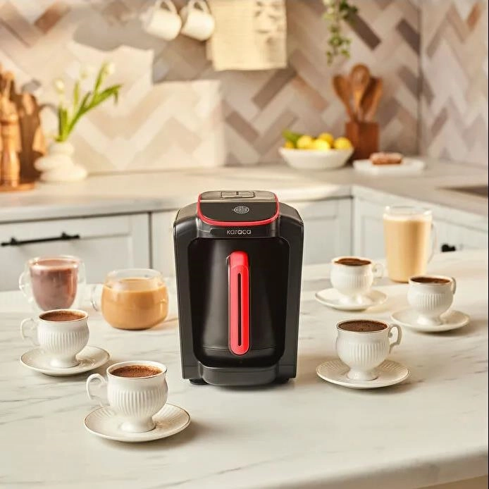 با دستگاه قهوه ساز ترکی Karaca Hatır Neo-S از قهوه ترک با شیر، شکلات داغ با شیر، قهوه با شیر و قهوه ترک پخته شده روی آتش لذت ببرید !شما میتوانید با انتخاب یکی از 3 طعم مورد نظر خود، 5 فنجان قهوه را به طور همزمان آماده کنید .