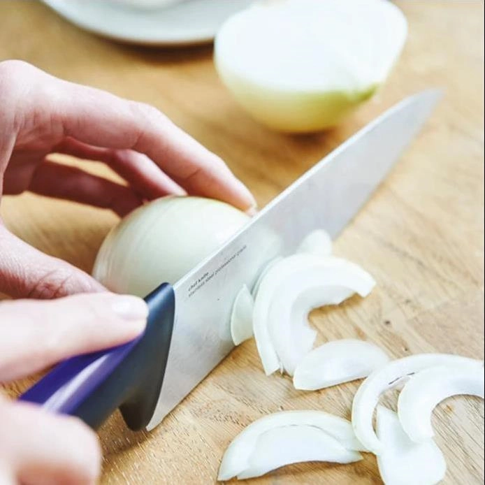 از قسمت صاف تیغه می توان برای له کردن حبه های سیر استفاده کرد تا پوست کندن آن آسان شود