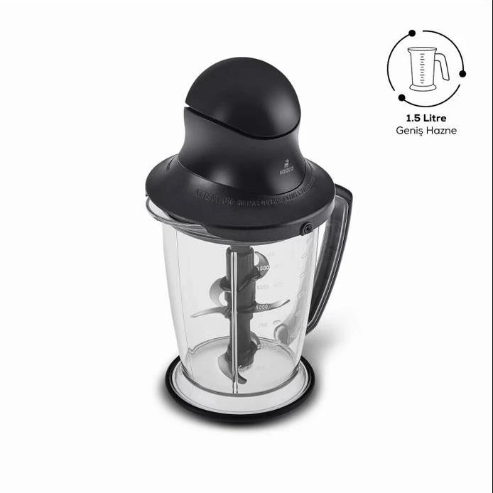 با قدرت بالا و تیغه های قدرتمند خود به راحتی غذا را خرد می کندبا کاسه بزرگ 1.5 لیتری خود، سهولت استفاده را برای دستور العمل های شما ارائه می دهد