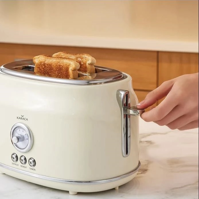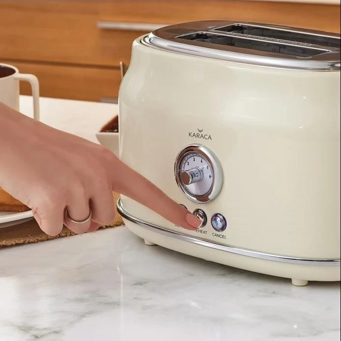 تستر نان کاراجا به لطف محفظه برشته دوتایی، می توانید 2 برش کوچک نان را همزمان برشته کنید. با طراحی رترو و بدنه استیل ضد زنگ فضایی شیک به آشپزخانه شما می بخشد. به لطف ویژگی مرکز خودکار نان، تمام قسمت های نان شما را به طور یکنواخت برشته می کند امکان استفاده چند منظوره را در یک محصول با عملکردهای یخ زدایی، گرم کردن و سرخ کردن آن فراهم می کند. با 6 سطح مختلف سرخ کردنی می توانید در سطح دلخواه سرخ کنید