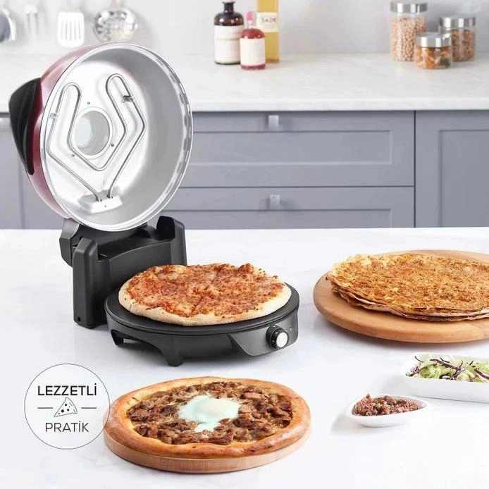 دستگاه پیتزا گاسترو 10 در 1، به لطف قدرت 1500 وات خود، تا 400 درجه افزایش می یابد و به شما این امکان را می دهد که فقط در 5 دقیقه پیتزاهای سریع و با طعم فر سنگی درست کنید. با 2 کفگیر که همراه محصول هدیه داده می شود، می توانید پیتزاهای خود را با خیال راحت، آسان و سریع سرو کنید. با دستگاه پیتزا گاسترو 10 در 1 می توانید پیتزا، شاه بلوط و ذرت بوداده، سبزیجات بریان، لواش، تنوری، نان گوشت، نان تخت،... درست کنید. به لطف پنجره شیشه ای روی آن، می توانید به راحتی محصولات خود را در حین پخت بررسی کنید.