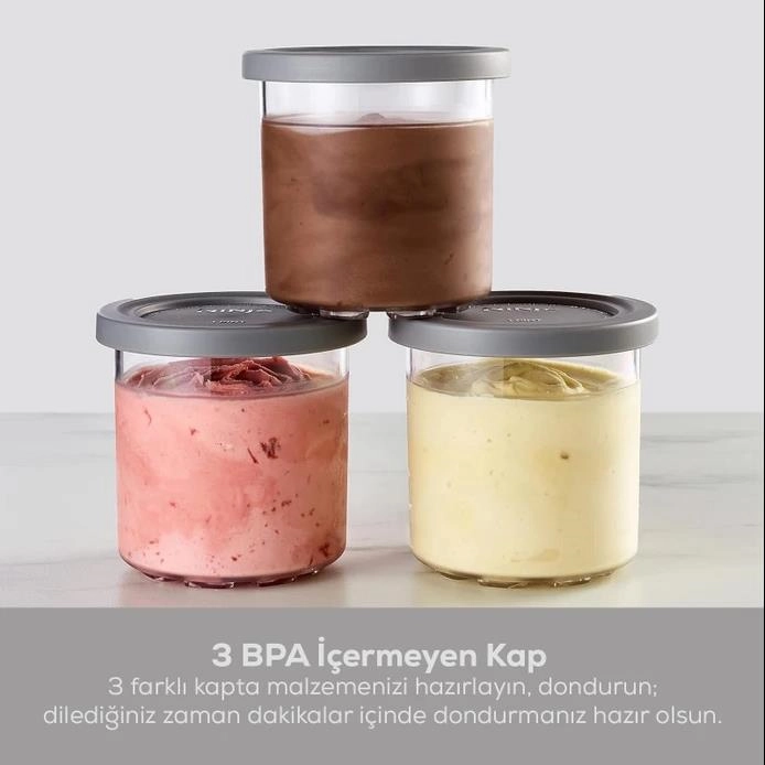 ظرف بدون BPA: در مجموع تا 1.4 لیتر بستنی با 3 ظرف مختلف بدون BPA درست کنید. ظروف خود را آماده در یخچال نگه دارید و در عرض چند دقیقه از بستنی خود لذت ببرید.