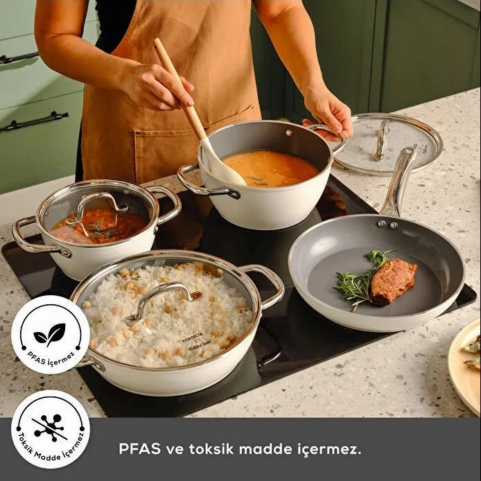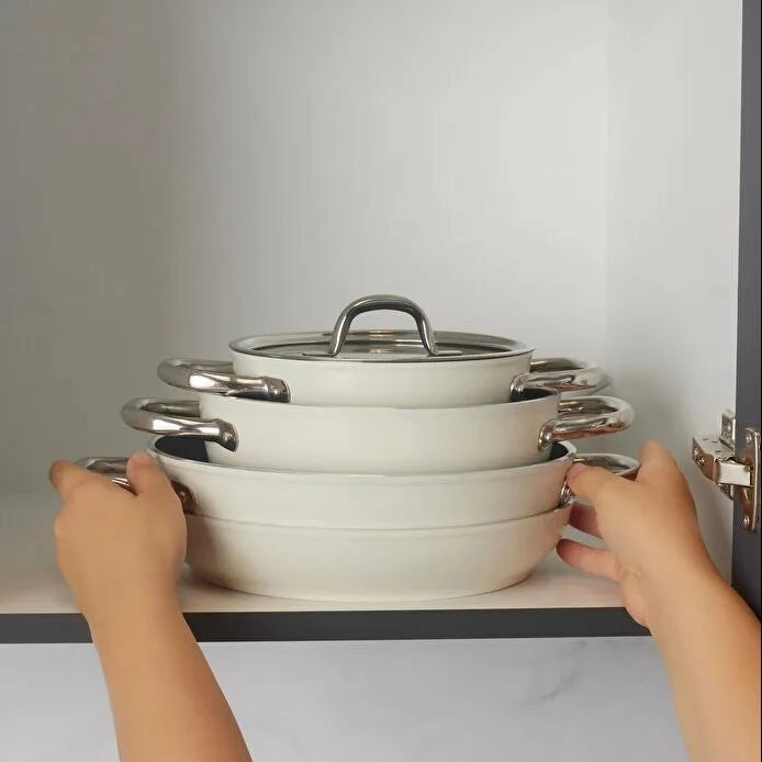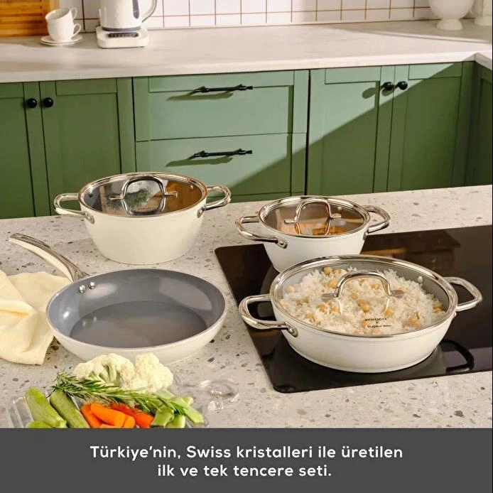 Karaca x Refika Swiss Crystal Creamy Metal Kulplu 7 Parça Tencere Seti Kremویژگیهای محصول