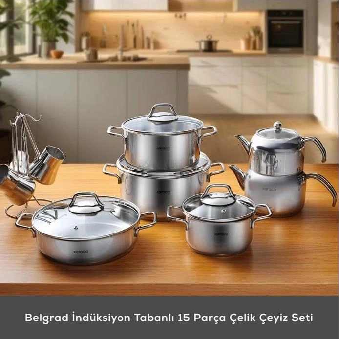 سرویس جهیزیه استیل القایی 15 پارچه Belgrad کاراجا