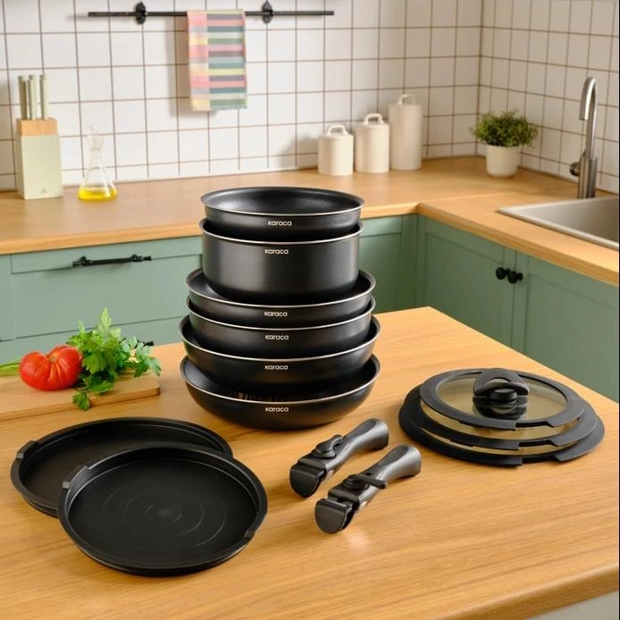 سرویس قابلمه القایی 12 پارچه کاراجا Biodiamond Easy کلیپ مشکی