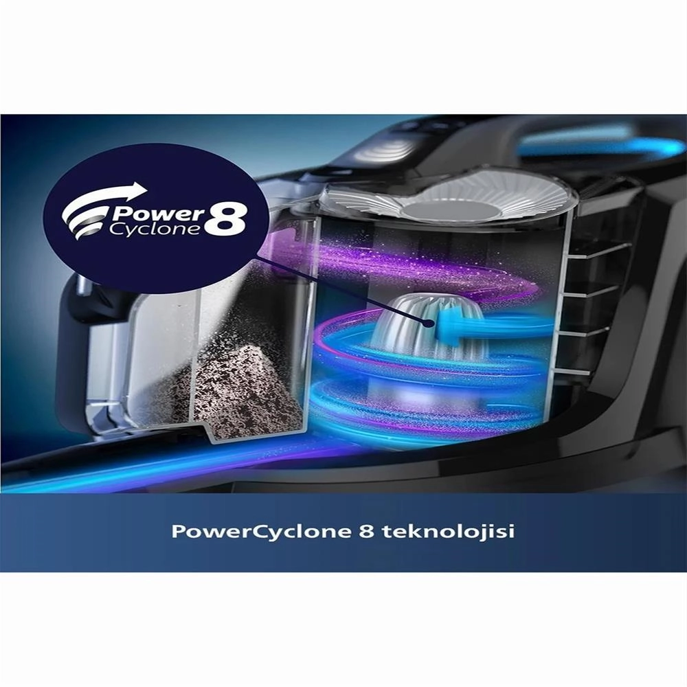 جاروبرقی بدون کیسه سری 7000 فیلیپس بالاترین قدرت مکش ما را ارائه می دهد. تجربه تمیز کردن عالی با فناوری PowerCyclone 8 و سر TriActive+ که 3 فرآیند تمیز کردن بهینه را ارائه می دهد، بسیار راحت و آسان است.