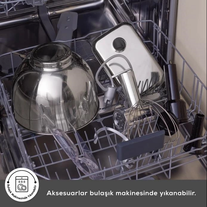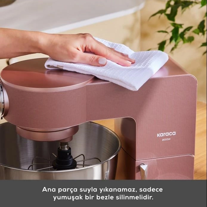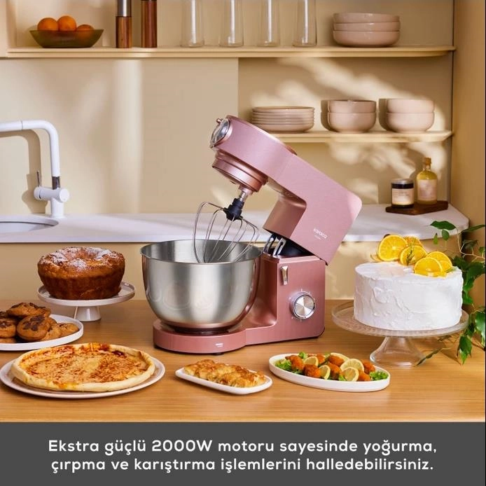 با موتور فوق العاده قدرتمند 2000 واتی خود، عملیات هم زدن، اختلاط و ورز دادن را به طور ایده آل انجام می دهد. علاوه بر این، کاربردهای متنوعی با 3 عملکرد مختلف ارائه می دهد: دستگاه کشش گوشت چرخ کرده، سوجوک- سوسیس و کوفته شکم پر. ویژگی حرکت مداری؛ این مخلوط ایده آل برای هم زدن تخم مرغ، تهیه سس، ورز دادن نان و آماده سازی پودینگ-کیک است. به لطف پوشش شفاف ضد پاشش آن، میز شما در تمام این فرآیندها تمیز باقی می ماند. به لطف کاسه استیل ضد زنگ فوق العاده بزرگ با ظرفیت 7 لیتر و قطعات داخلی فلزی، دوام و ماندگاری بالایی دارد. با تنظیم سرعت 6 مرحله ای می توانید تمامی عملیات را با سرعت مورد نیاز خود انجام دهید.