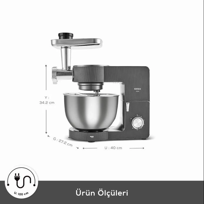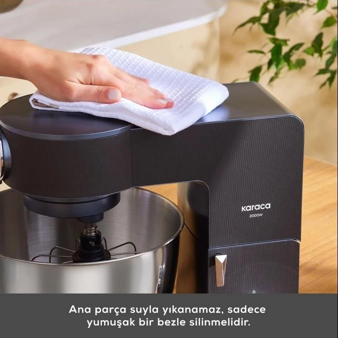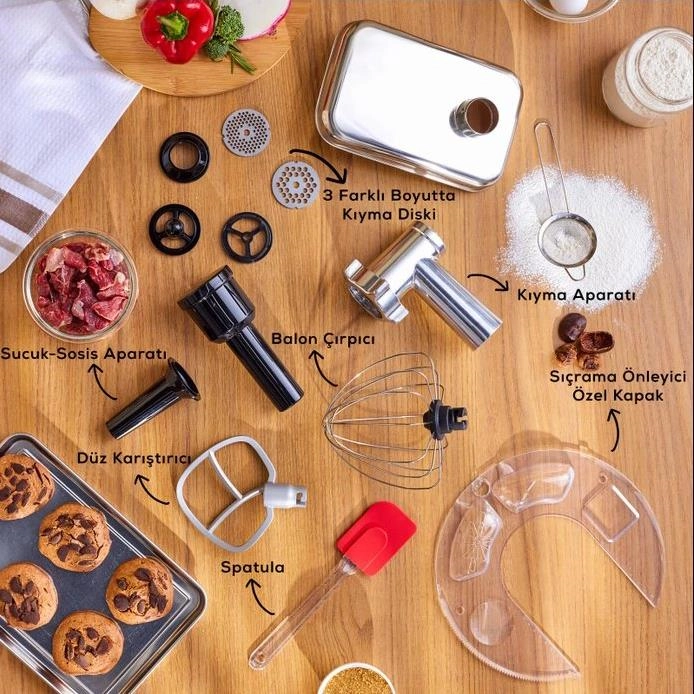 با موتور فوق العاده قدرتمند 2000 واتی خود، عملیات هم زدن، اختلاط و ورز دادن را به طور ایده آل انجام می دهد. علاوه بر این، کاربردهای متنوعی با 3 عملکرد مختلف ارائه می دهد: دستگاه کشش گوشت چرخ کرده، سوجوک- سوسیس و کوفته شکم پر. ویژگی حرکت مداری؛ این مخلوط ایده آل برای هم زدن تخم مرغ، تهیه سس، ورز دادن نان و آماده سازی پودینگ-کیک است. به لطف پوشش شفاف ضد پاشش آن، میز شما در تمام این فرآیندها تمیز باقی می ماند. به لطف کاسه استیل ضد زنگ فوق العاده بزرگ با ظرفیت 7 لیتر و قطعات داخلی فلزی، دوام و ماندگاری بالایی دارد. با تنظیم سرعت 6 مرحله ای می توانید تمامی عملیات را با سرعت مورد نیاز خود انجام دهید.