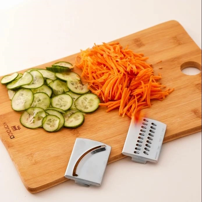به لطف دستگاه رنده و برش استیل، می توانید سالادهای رنگارنگ را با برش دادن یا رنده کردن میوه ها و سبزیجات خود به دلخواه تهیه کنید.
