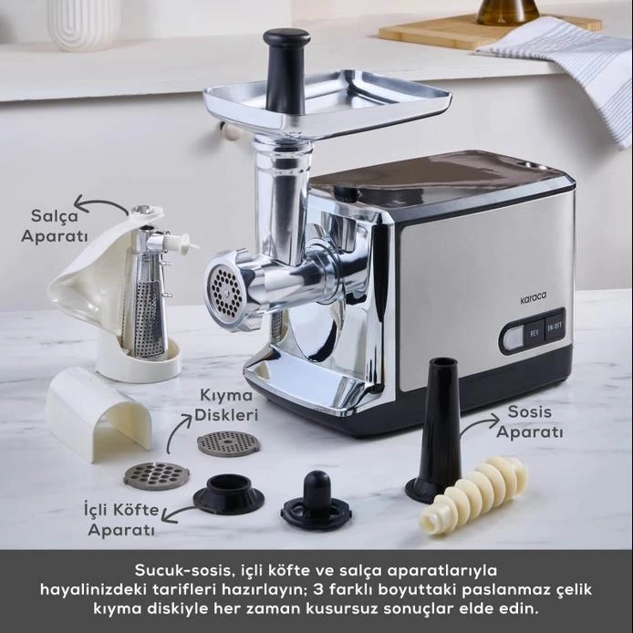 در حال حاضر تهیه سوسیس، کوفته شکم پر و رب گوجه فرنگی در خانه با چرخ گوشت Karaca Inox بسیار آسان است!