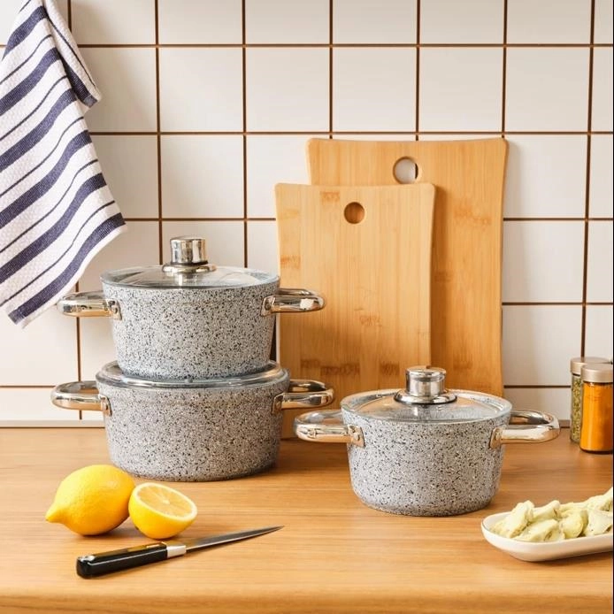 سرویس قابلمه متوسط 6 پارچه کاراجا Biogranit Nare طوسی آبی