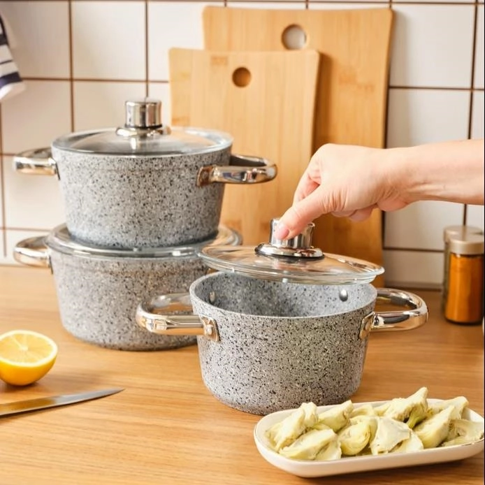 - بسته شامل یک عدد قابلمه عمیق قطر 16 سانتی همراه درب یک عدد قابلمه عمیق قطر 18 سانتی همراه درب یک عدد قابلمه عمیق قطر 20 سانتی همراه درب