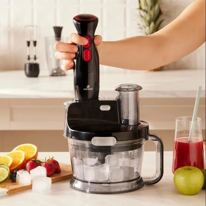 غذاساز Karaca Multimax که با کارایی خود جلب توجه می کند علاوه بر ویژگی خرد کردن میتوانید سوپ و غذاهای مشابه خود را با قسمت مخلوطکن فولادی ضدزنگ مقاوم در برابر حرارت،درست کنید ظرف 800 میلی لیتری آن می توانید هر مخلوطی که می خواهید تهیه کنید.