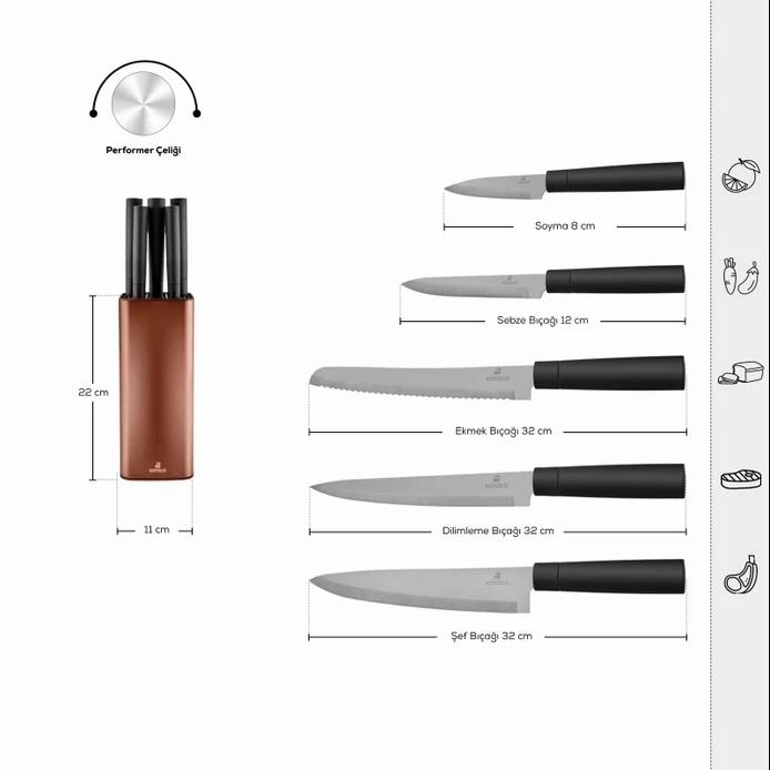 Karaca Grammy Copper 6 Parça Bıçak Setiجنس فولاد ضد زنگ