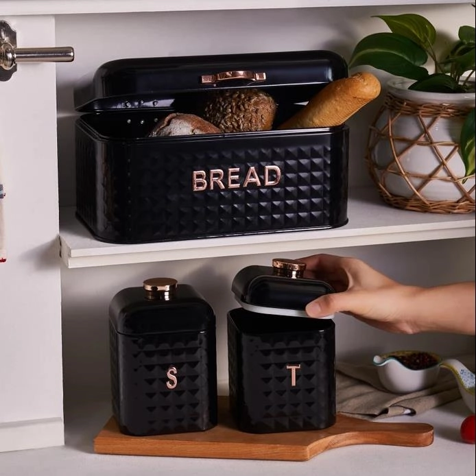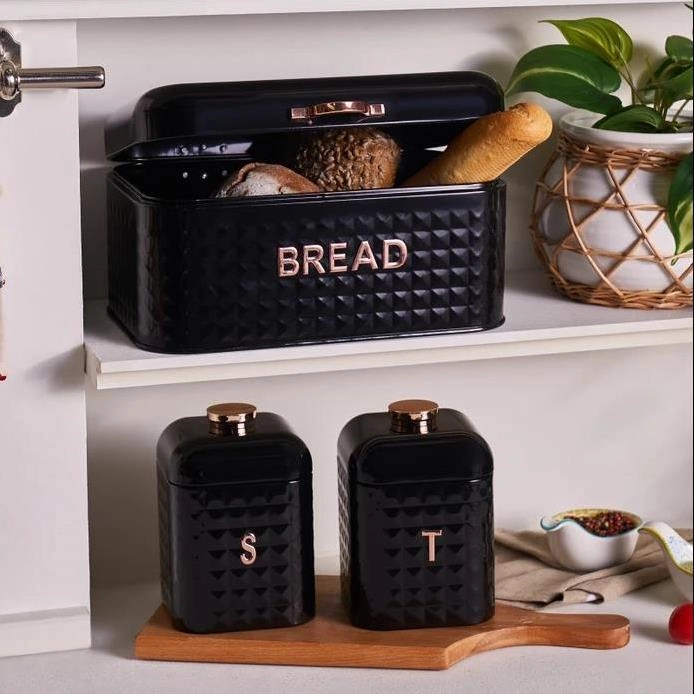 Karaca Elmas Ekmek Kutusu Saklama Kabı Hediyeli Siyah-